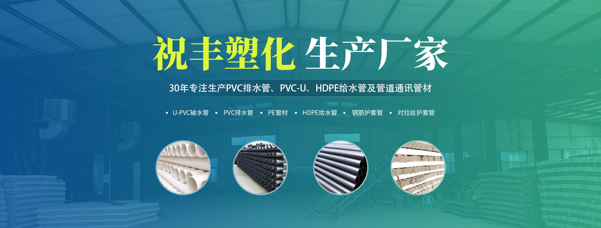 安阳市祝丰塑化有限公司坐落在滑县工业园区,东临大广高速,西临京珠高速,是郑州、鹤壁、安阳、濮阳四个城市的输纽,交通便利、环境优美。 公司始建于八十年代,经过二十余年的艰辛创业,规模不断壮大,由十多万元资产的小厂,发展到现占地面积达一万多平,建筑面积一万平,资产2000多万元管材生产企业。公司生产PVC-U、PVC排水管、HDPE给水管、钢筋护套管管道通讯管材等产品,广泛用于农田节水、高山引水、人畜用水、建筑、电力通讯等多种用途,品种齐全。为了满足用户需求,可承揽各种给水、节水、灌溉工程?!白7崴芑逼窘枨烤⒌氖盗Γ帕嫉墓芾硭健!耙灾柿壳笊妫孕庞蠓⒄埂钡脑蛉σ愿昂痛蠹夜餐茉烀篮梦蠢础?.